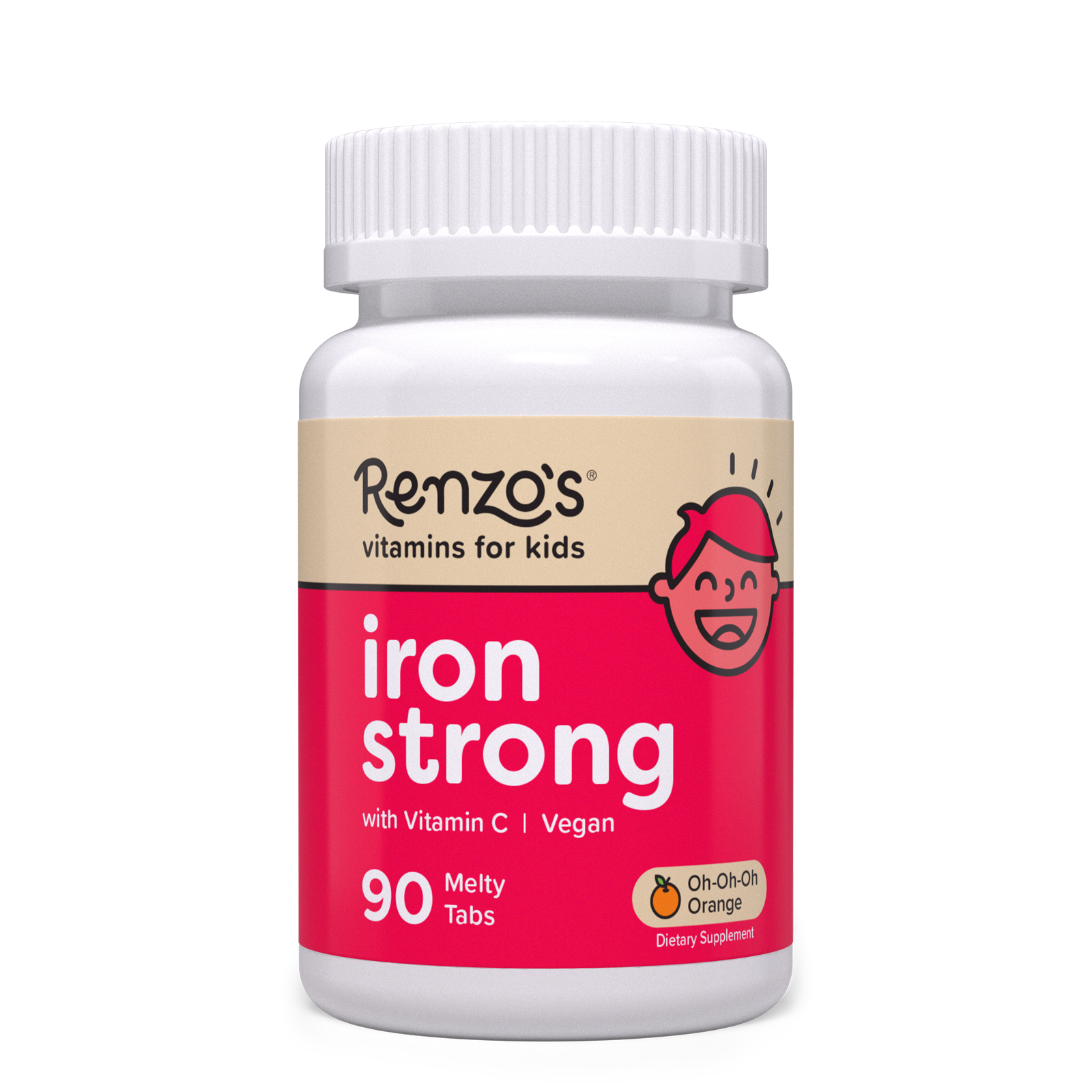 Renzo's Iron Strong delivers gentle, tummy-friendly iron with safer absorption for kids who need an extra boost. These are especially made with Vitamin C for better absorption and in a delicious easy-to-take Melty Tab without artificial flavors, sweeteners, or unnecessary additives—making it a parent-approved choice for daily nutrition.